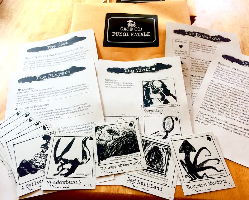 Our quickstart mystery bundles are out of stock, but we have a limited quantity of single case files remaining! From now until they're sold out, if you buy Noirlandia here, we'll send each book with a mystery quickstart case file for free. Each case file contains: